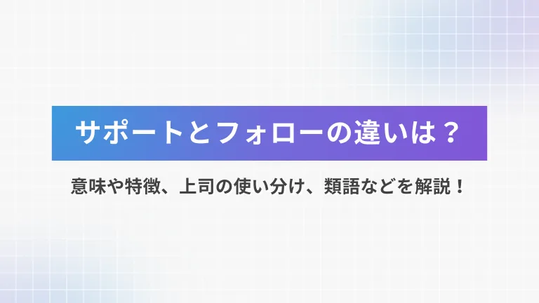 サポートとフォローは相手を助けるという点で同じ意味を持っているため、混同して使用してしまいがちです。 ただ、理想のチーム運営や円滑な業務推進、部下の成長を実現するには、サポートとフォローの違いを正しく理解する必要があります。 今回はサポー... -